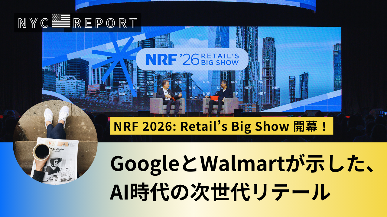 1月11日から3日間、世界最大級の小売カンファレンス「NRF 2026: Retail’s Big Show」がニューヨークで開幕。過去最多4万人超の来場が見込まれる中、Google(グーグル)やWalmart(ウォルマート)をはじめとするリーディングカンパニーが集結し、AIや次世代コマースを軸に小売の最新トレンドと実装事例が共有されました。両社CEOが語ったAIエージェント主導のリテールの現在地と未来を、ニューヨーク現地から速報レポートでお届けします。