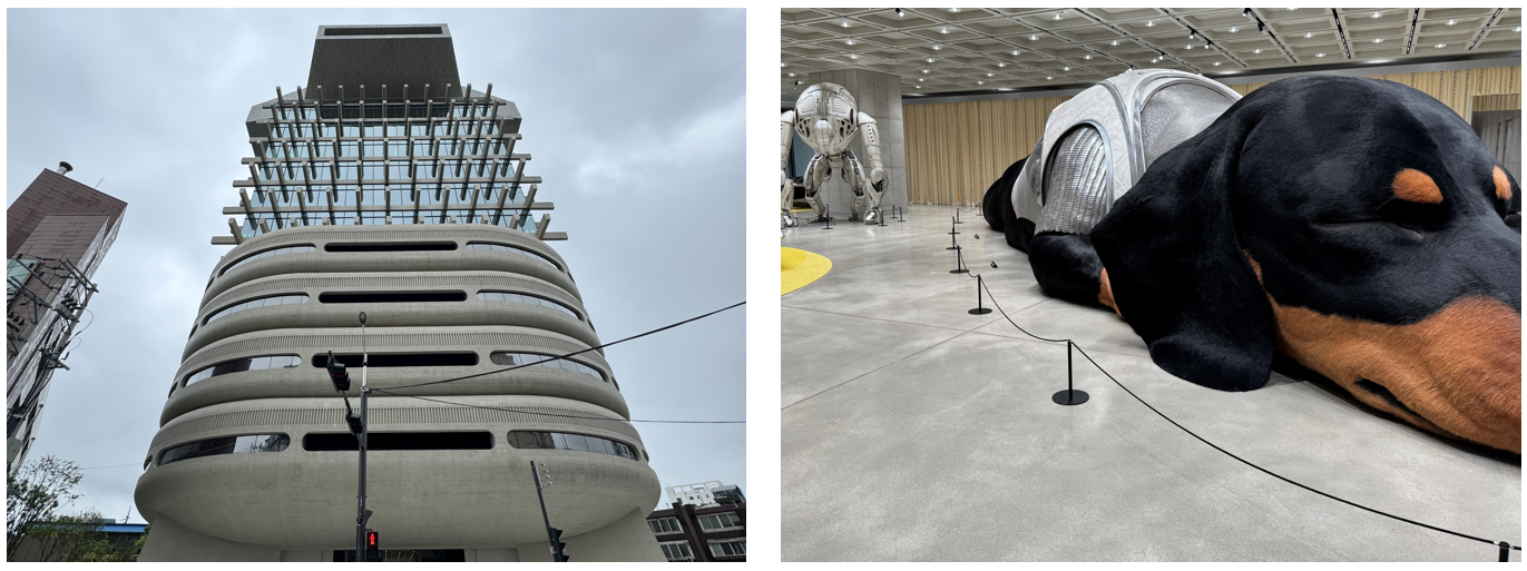 写真左:新社屋内にオープンした「HAUS NOWHERE SEOUL」は、地下5階・地上14階建ての構造(筆者撮影)