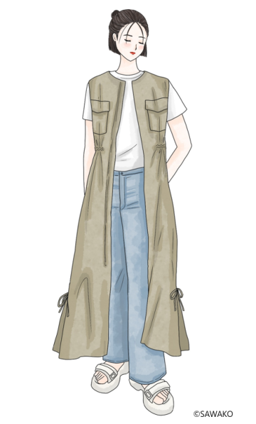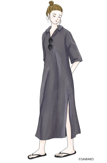 今夏は、前開きタイプの「ワンピース」が人気を集めました。可変性と着回し力がその要因といえるでしょう。「ロングジレ」のような羽織りモノとしても活用でき、「Tシャツ」や「デニム」とのレイヤードで、幅広いスタイリングが可能です。両サイドのリボンでシルエット調整ができる点も魅力で、カジュアルにも女性らしくもアレンジできる柔軟性が支持を集めました。