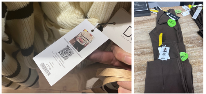 商品タグにQRコードを付け、オンライン購入にも対応する仕組みが導入されている(筆者撮影)
