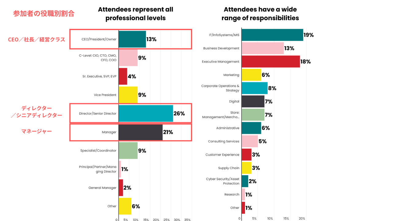 [NRF’25]参加者の役職別割合(参照:NRF公式デモグラフィック・編集部により一部編集)