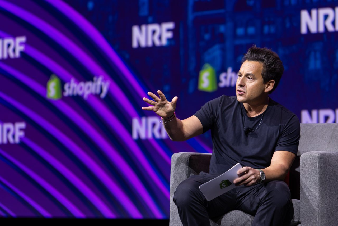 「NRF Big Show 2025」に登壇した「Shopify」プレジデントのハーレー・フィンケルスタイン氏。