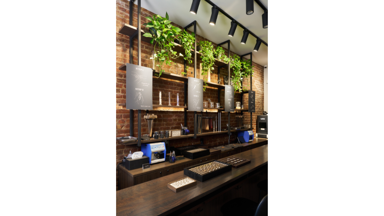 普段から筆者は、市場調査を兼ねてニューヨークの街中をよく歩いているため、見慣れない店構えにはつい敏感に反応してしまいます。昨年の秋にも、マンハッタンのノリータ(Nolita)を歩いていた際に、これまで見かけたことのないジュエリーショップがふと目に留まりました。店舗のウインドウ越しに、顧客がカウンターで店員と会話をしながら何やら作業をしている様子が垣間見えました。